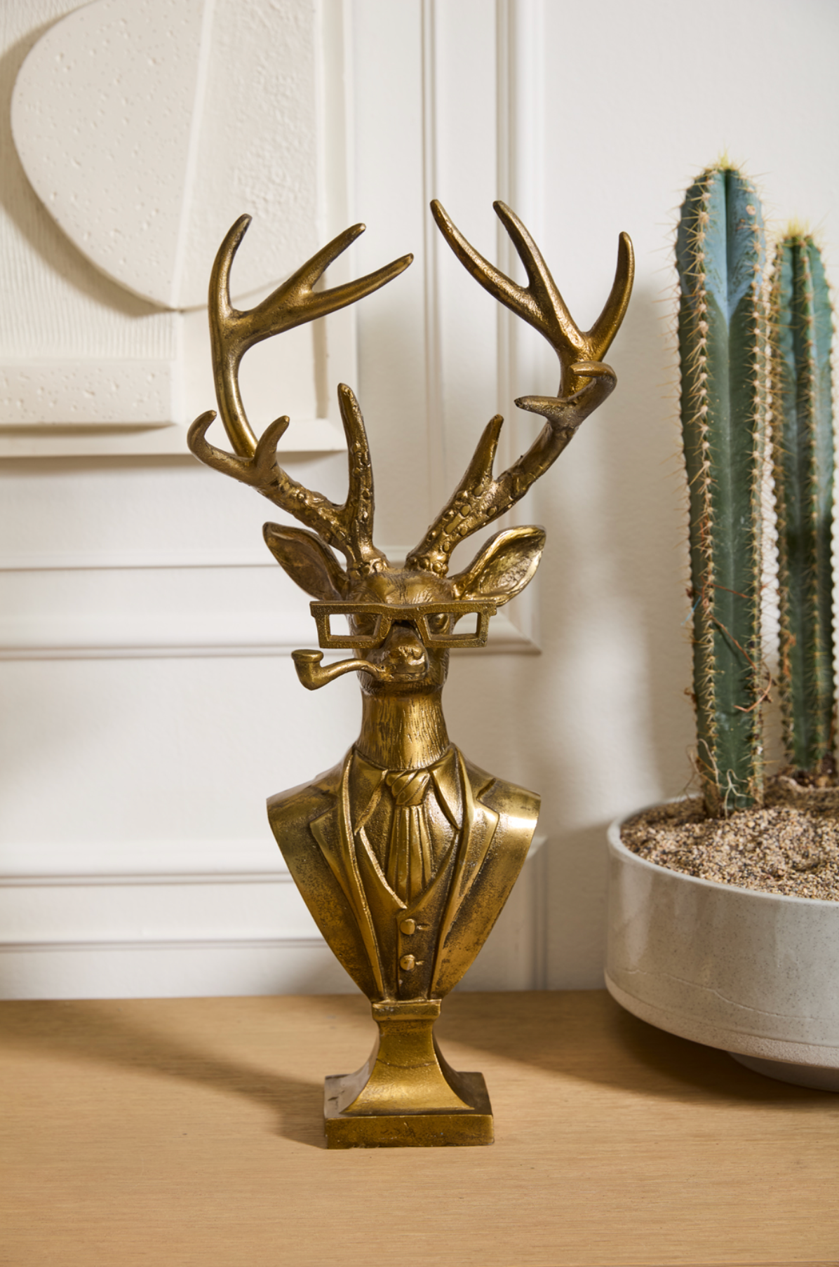 Eric and Eloise Collection - Frankie the Smoking Stag Bronze Bust Table Mantel Decor